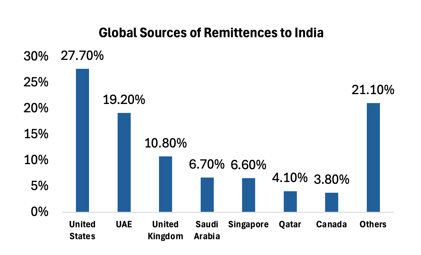 According to the Reserve Bank of India’s Remittance Survey, the United States has emerged as the top remittance-sending country to India, accounting for 27.7% of the total remittance receipts into India.